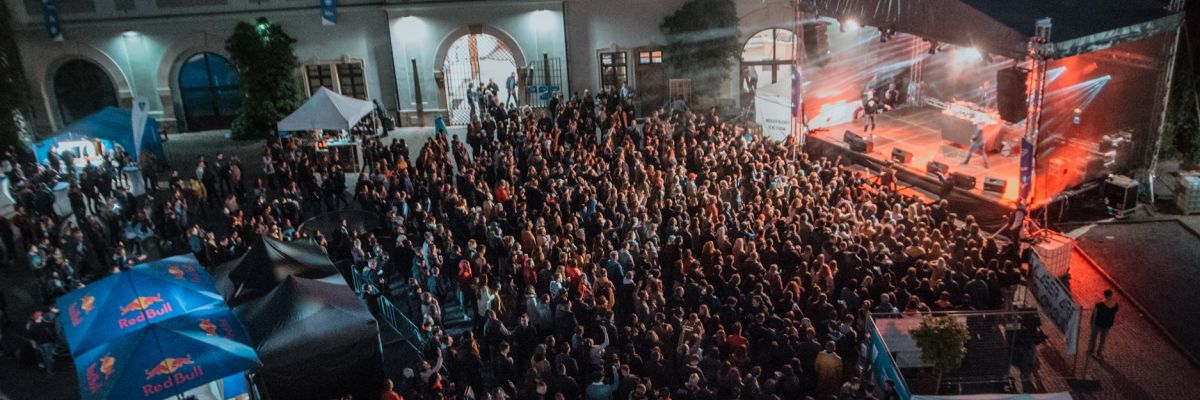 Poté už začaly na Zbrojnici koncerty prvních kapel. Později odpoledne návštěvníky nalákala do Knihovny UP vernisáž výstavy Popkultura kolem nás, ti si tam mohli prohlédnout také výrobky na stáncích DizajnTrhu. Stánky byly samozřejmě i před Zbrojnici, na nich svou činnost prezentovali až do 19 hodin neziskové a studentské organizace. Na parkánu Konviktu se lidé bavili divadlem, improvizačním battlem a stand up comedy.